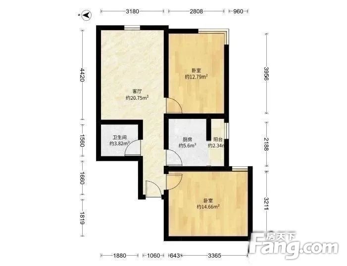1.此小区户型:2室1厅1厨1卫1阳台,朝向:东南